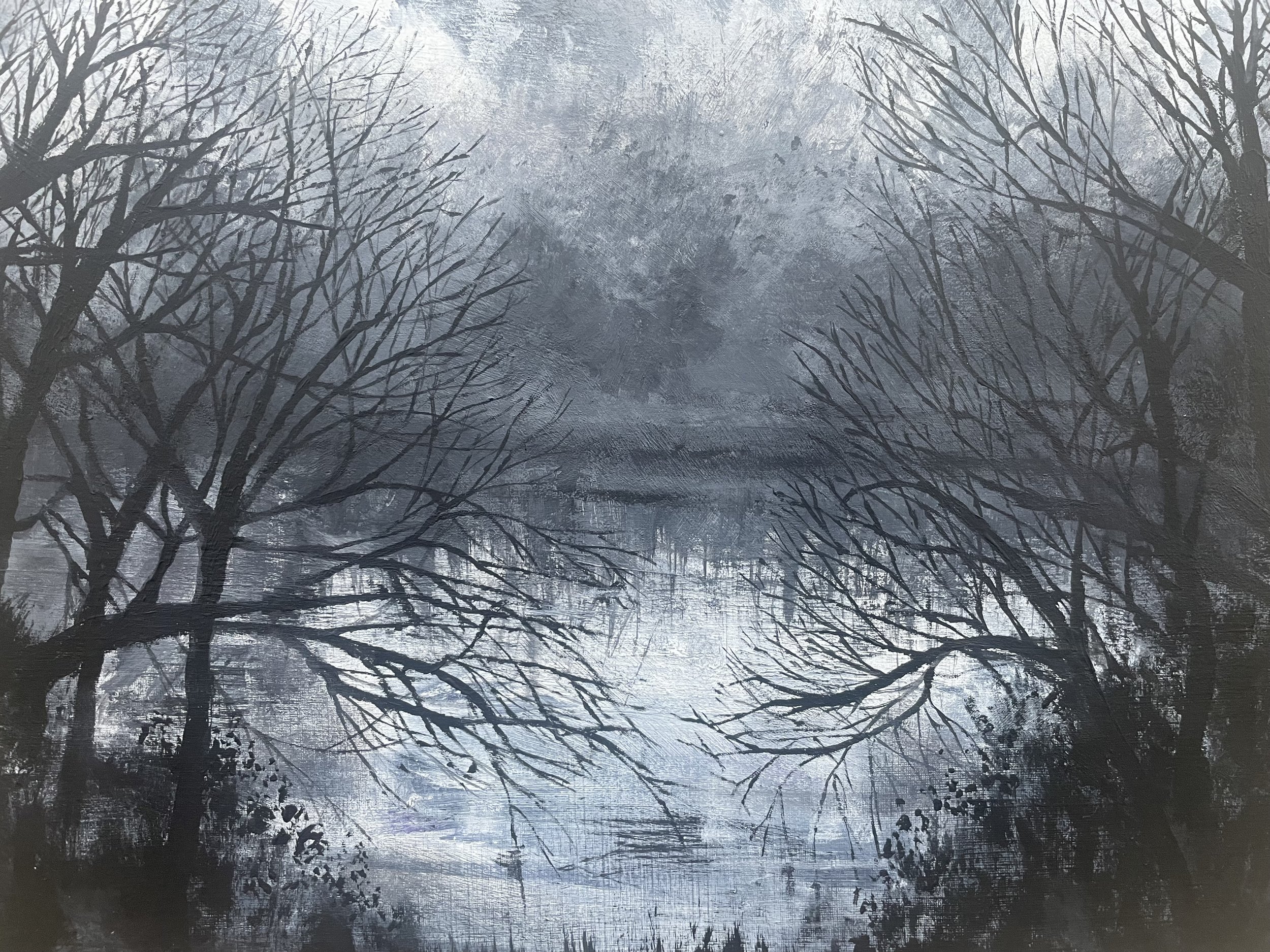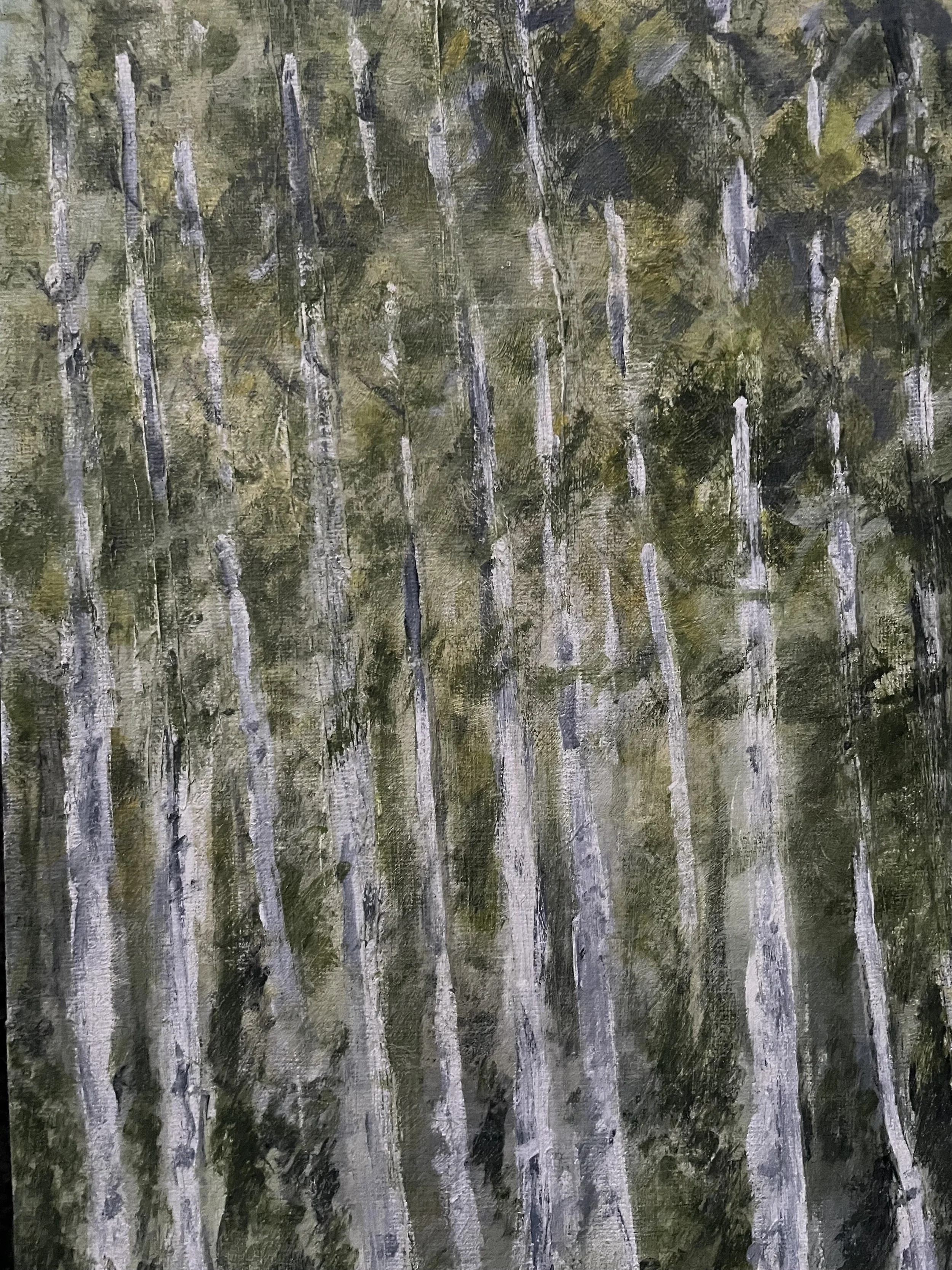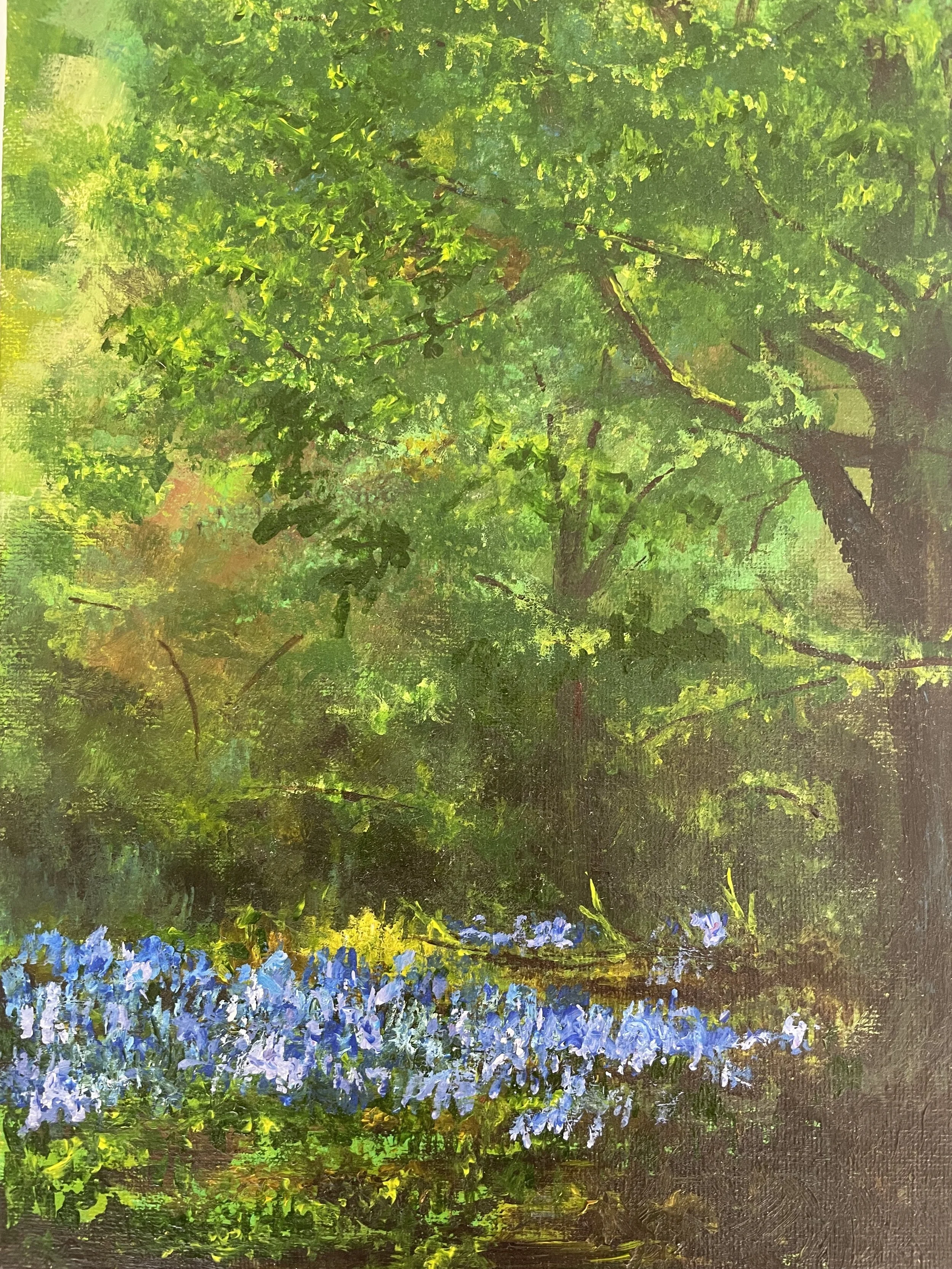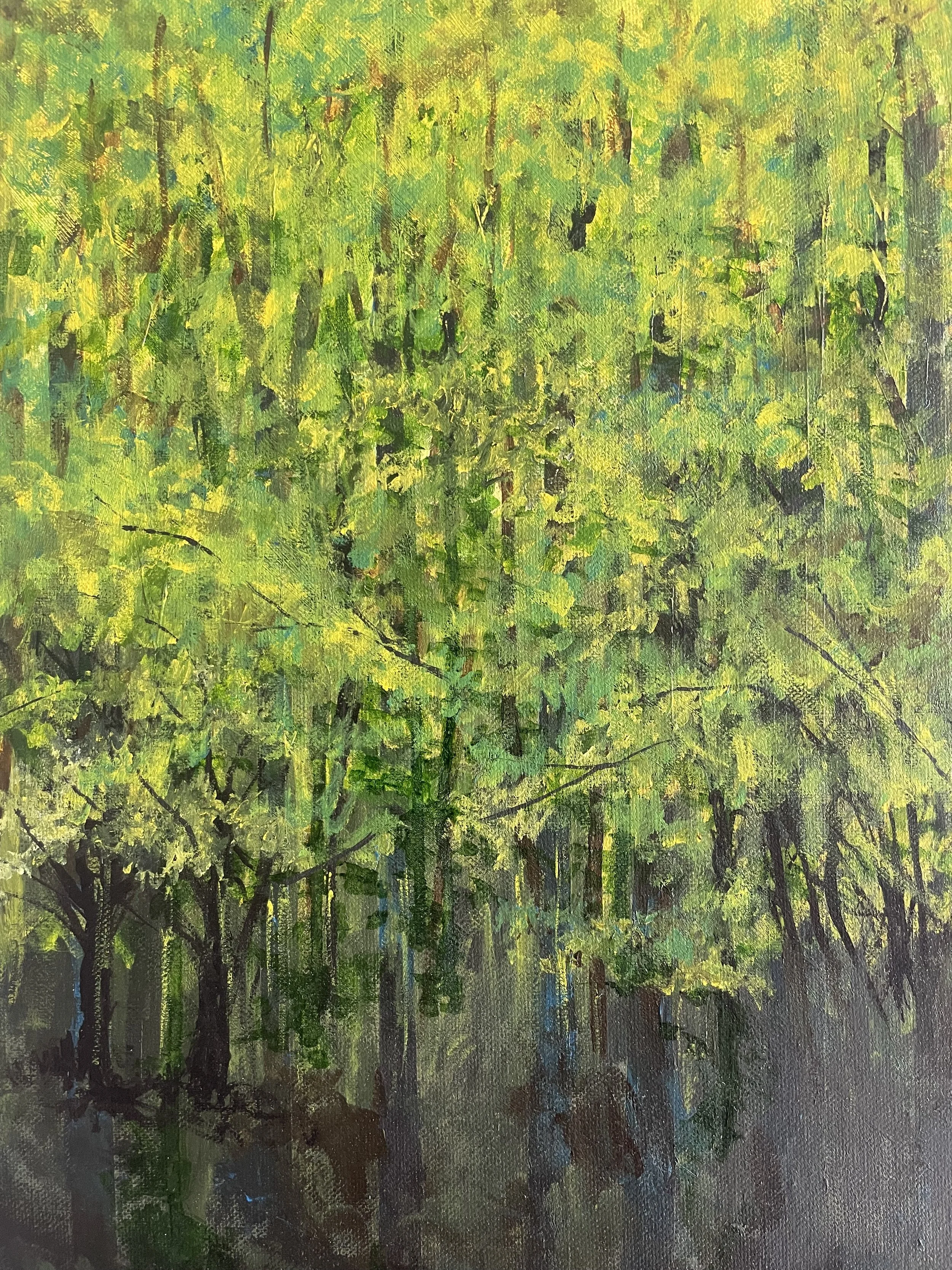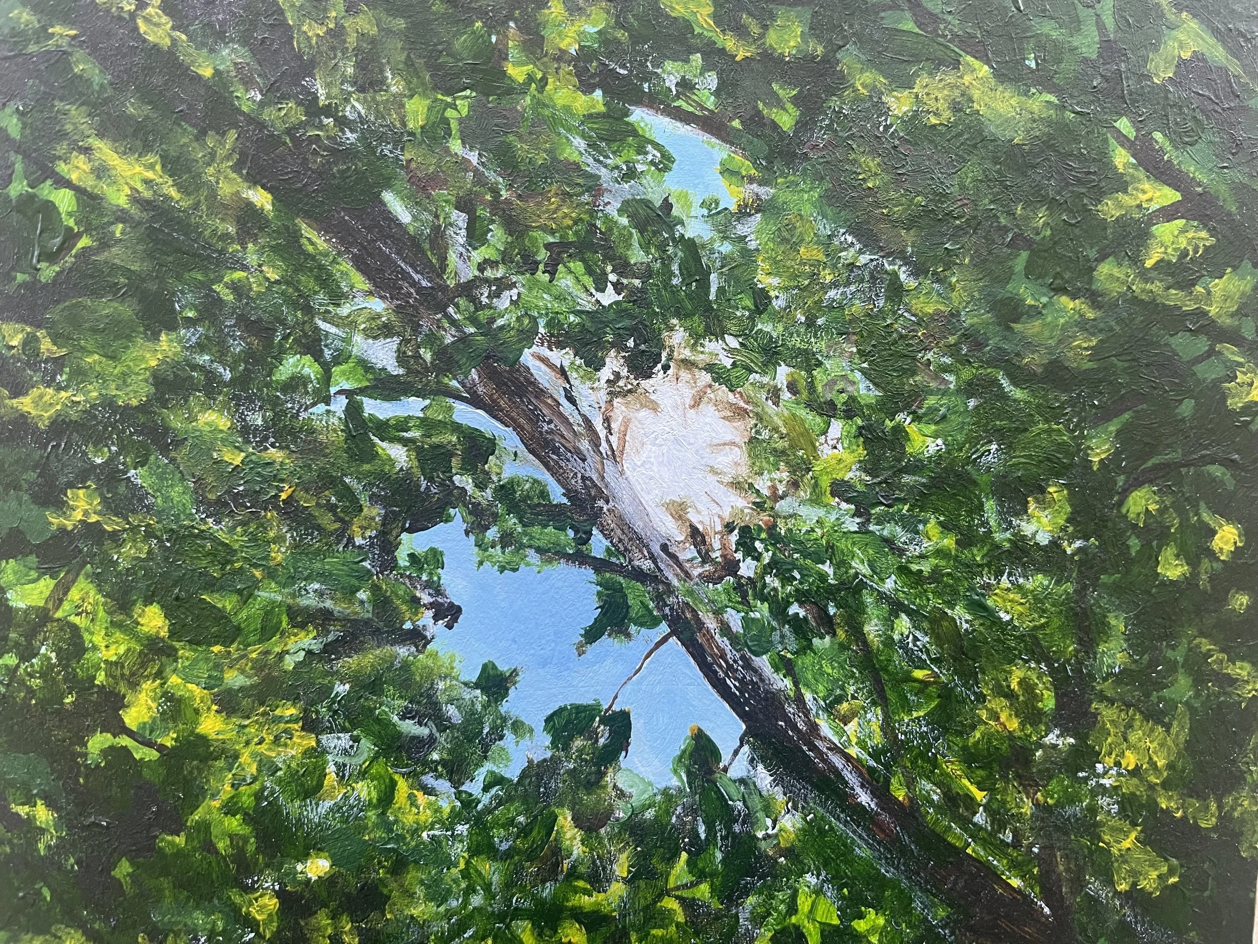Sunshine through trees, Cardross House, Stirling [20x20cm canvas board] £130